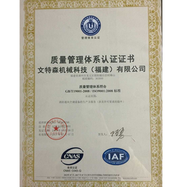 熱烈慶祝文特森機械科技(福建)有限公司通風機性能測試系統通過國家權威機構認定?